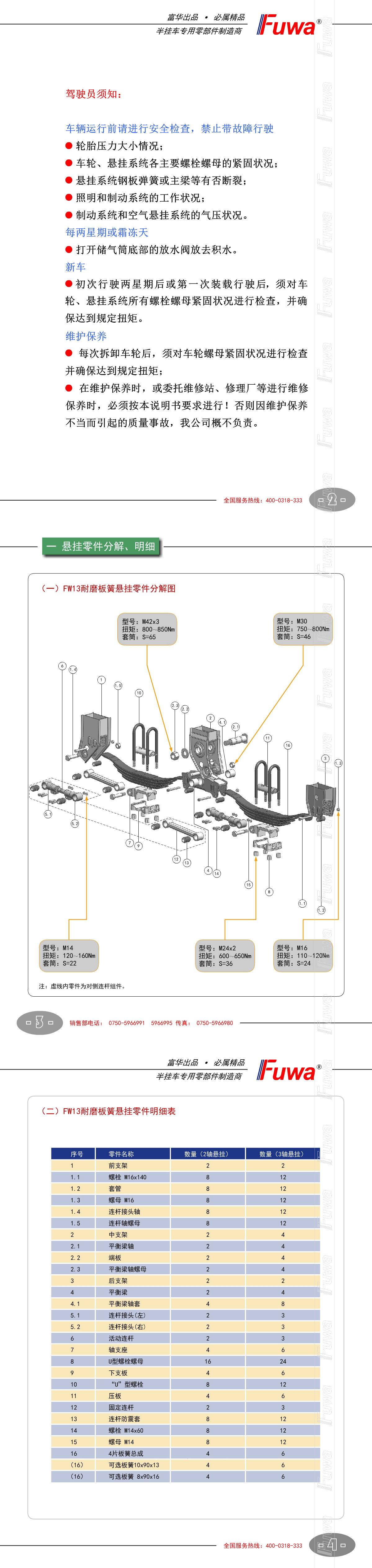 FW13耐磨板簧悬挂【产品使用说明书】